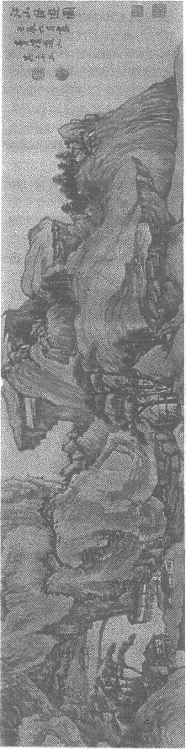 | 释义 | 程正揆江山卧游图卷清。程正揆绘。纸本设色。纵26厘米,横305厘米。北京故宫博物院藏。程正揆(公元1604—1676年),字端伯,号鞠陵,晚号青谿道人,湖北孝感人,后居江宁(今江苏南京)。崇祯四年(公元1631年)进士,入清后官至工部侍郎。工书,善画山水。山水得董其昌指授,远溯宋元。多用秃笔,枯劲苍简。爱作《卧游图》,达五百卷之多,统一标题下以副标题区分。与髡残友善,并称“二谿”。有《青谿遗稿》存世。此图卷为众多的《江山卧游图卷》中第二十五卷。画面上,奇峰怪石逶迤,层崖陡壑峻险,山中的茂树聚成片片丛林。山谷处、林木旁散落掩映着点点房屋。溪流纵横,随地势或积水为潭、或飞瀑如练。作者以轻快的笔触,奔放地描绘出苍浑的山水,在写实的基础上加以艺术再现,雄秀之中透出逸气,是程正揆的杰作之一。署款壬辰,即顺治九年(公元1652年)。钤〈正揆印〉、〈端伯〉二印。