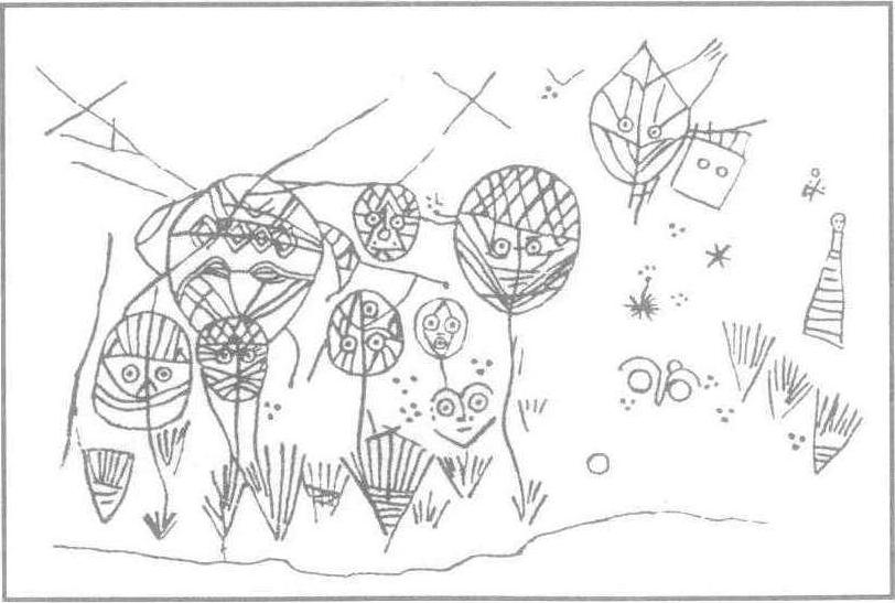 | 释义 | 稷神崇拜图在今江苏省连云港将军崖南口,有 一弧形巨石,其上刻有星相图和植物身人面形。前者当与天体崇拜有关,后者疑为谷物神(即稷神)崇拜的记录。这组植物身人面形共十面,阴线磨刻成,刻痕断面呈U形,深约1厘米,宽度在2—3厘米之间,浅条粗深圆滑,全无金属器敲刻的痕迹,因为线条边缘没有剥落痕迹,估计是用石器磨刻成的。十个人面形大小不等,最大的 一面高90厘米,宽110厘米,最小的仅高18厘米、宽16厘米。最大的人面形作老妪模样,双目眯成鱼形,额头刻成菱形双圈纹饰带,额头两边各有一缕发辫装饰,脸颊口鼻部位刻以交叉网状纹,颇似黥面。其它九面双目皆成圆球状,脸上也布满网状纹。十个人面形与地面草状物相连,均无耳朵,犹如植物结出来的果实。人面与植物相连,说明与植物崇拜有关,就像人面兽身与动物崇拜有关 一样。人面表示神灵,植物和动物则是崇拜、祈求的主体。考古发掘证明,北方原始民族最早种植的农作物是稷(又称谷子或小米),稷在谷物神中地位最高,被尊为 “五谷之长”(见《说文》)。连云港古属东夷少昊氏鸟图腾氏族活动之域,周代为剡国所辖,汉属东海郡。这里地处边远,交通不便,人迹稀少,土地贫瘠,田野不辟,米粟不丰,人民生活十分贫困,便希望谷物神给人以幸福。谷物何以会春青而秋黄?何以会丰歉不均?大概都是稷神在“作怪”。在原始人看来,谷物也同人一样,有生命、有思想、有父母、有子女、一代传一代。人面与植物长成一体,脸上又布满植物状纹饰,这不分明是把植物人格化了吗?九面小人头环绕一面大人头,俨然一个大家族的子子孙孙围着一位老祖母,植物世界被赋予了人间形式。