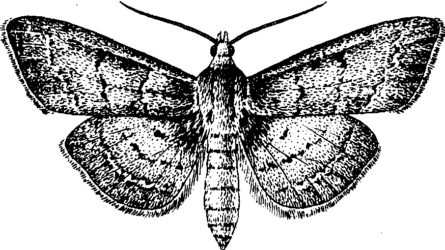 稻切叶野螟 浙江杭州年生5~6代,以末龄幼虫或蛹作土茧越冬。各代成虫发生期:越冬代在5月上中旬,1代6月中下旬,2代7月中下旬,3代8月中下旬,4代9月,5代11月上中旬。成虫夜晚羽化,趋光性强。卵多成块产于嫩绿的稻叶背面近中脉处,极少散产。每只雌虫一生约产卵200粒。初孵幼虫潜入心叶取食,3龄后缀叶成簇为害。老熟后多在被害稻丛间近基部处,少数在稻株上部吐丝,将虫粪、叶屑缀成薄茧化蛹。卵期一般为4天; 幼虫期15~34天。预蛹期1天,蛹期7~25天。完成整个世代平均天数,2代32.1天,3代32.6天,4代42.3天,5代69.8天。小苗移栽田(或板箱育苗移栽田)发生较重。防治稻纵卷叶螟可兼治此虫。 稻切叶野螟rice leaffolderPsara licarsisalis (Wal-ker),又称稻切叶螟。昆虫纲,鳞翅目,螟蛾科。分布于华东、华中、华南、西南等地。东南亚、南亚、澳大利亚也有分布。寄主有水稻、楠竹、甘蔗。成虫翅展20~24 mm,灰黄褐至暗褐色,前翅在强光下略带紫色光泽,翅面有深褐色弯曲横纹,中室中、上部有一小褐点,后翅亦有淡褐色波状纹,雄蛾前翅沿前缘从基部向外有黑色厚鳞毛,腹部细长,尾端略上举。末龄幼虫体长20~22 mm,头和前胸背板黄褐色,其余污绿色,背线绿色,各节背面具褐色毛片。浙江杭州一年发生5~6代,以末龄幼虫或蛹在土茧内越冬。成虫有趋光性,产卵时有趋嫩绿习性,卵产于稻叶背面近中脉处,卵块椭圆形,部分排列成行。初孵幼虫啃食心叶叶肉形成透明条斑,3龄后吐丝拉叶作虫苞,吃光上部稻叶,如刀切状,老熟后在稻丛基部作茧化蛹。孕穗至灌浆期为防治重点,可用农药毒杀。 |