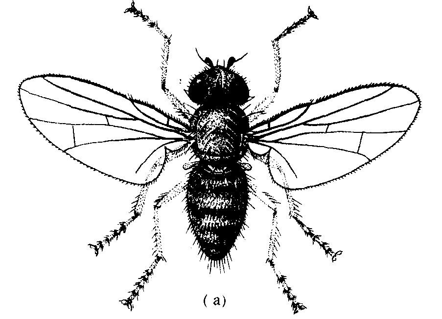 在苏联中亚细亚地区年生3~4代,世代重叠。以成虫在田埂裂缝中,田间土块下以及芦苇秆等残枝下越冬。当春季排水渠及田边死水坑解冻后,开始活动,在污水面上追逐交配,稻田灌水后,即迁向田中。为害限于小苗期,但此后在田外排水沟中,仍有各虫态发生。成虫喜栖息于污水面,取食水面上漂浮的腐败有机物残屑,在其上产卵,每次产卵数在100粒左右。遇降雨或降温时,成虫多潜伏于田边、沟边的土缝或土块下。末龄幼虫多附在稻根或秧苗茎叶上化蛹。卵期4~5天; 幼虫期11~39天,一般15天;蛹期9天左右。 此虫仅发生于盐碱稻区,但pH值小于7.5或大于9时,则不能生存。在新疆稻区,凡田埂上有白碱或黑碱的稻田,当年新开垦而未经洗碱的稻田,以及半干涸的浅水或死水里,发生量较大。漂浮物多而脏的田块,产卵常多,受害亦重。宜保持水渠畅通,勤排勤灌,降低上壤酸碱度,辅以器械和药剂防治,可控制为害。从解冻起,到水稻秧苗期,成虫盛发时,设置黑光灯诱杀;利用成虫喜群栖污水面的习性,用扫网捕杀。稻田灌水时,捞除水面的漂浮物,及时处理,可以消灭大量蝇卵和蛹。虫口密度在田间发生较大时,可用敌敌畏、辛硫磷乳油、或敌百虫拌和锯木屑、细土撒施防治。 稻水蝇rice ephydrid flyEphydra macellaria Eg-ger,昆虫纲,双翅目,水蝇科。分布于新疆、宁夏、内蒙古、河北、辽宁等省区。中亚细亚诸国也有分布。寄主为水稻。成虫体长约6 mm,头顶具金绿色光泽,复眼红褐至黑褐色,有眼缘毛,触角芒基部羽毛状,端部无毛,胸背有紫蓝色光泽,平衡棒及胸足黄色,腹部蓝灰色。末龄幼虫体长12 mm,土灰色,头小,口钩黑色,第4~11节腹面有突起的伪足一对,末端具叉状呼吸管。一年发生数代,以成虫在土缝及枯枝落叶下越冬。成虫喜在污水面上活动,有趋光性,卵多产于水面田边漂浮物上;蝇蛆蛀食稻种,咬断幼根,造成缺苗。幼虫老熟后,以第9~11节的伪足合成环状,固定在根系上或其他漂浮物上化蛹。稻田及时排水换水,以黑光灯诱杀,打捞水面漂浮物,在排水渠或死水坑上滴灌废机油,均为有效的防治措施。 稻水蝇即“稻水蝇蛆”。 |