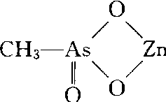 | 释义 | 稻脚青zine methanearsonate有机胂杀菌剂。化学名称:甲基胂酸锌。化学结构式如下。原药白色有光泽结晶,不溶于水和多种溶剂,稍溶于酸性介质中,化学性质稳定。主要用于防治水稻纹枯病,可叶面喷洒和撒施毒土,具有保护和治疗作用。对植物易产生药害,特别是水稻幼穗分化期后使用要慎重。水稻产生药害往往表现青穗直立。扬花不正常,空秕粒增加,稻壳重瓣,小穗退化,稻谷在穗上发芽等多种症状。用量过多甚至会影响下季水稻生长。对小鼠急性口服LD50为468 mg/kg。为减少在稻谷中胂的残留,早稻安全间隔期35天,晚稻45天,控制胂残留量规定1 mg/kg以下。