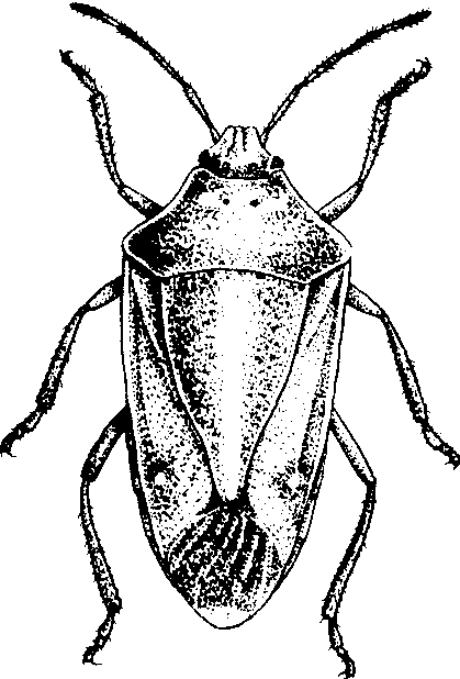 | 释义 | 稻褐蝽rice brown stink bug刺吸水稻等植株汁液的蝽类。又名白边蝽。学名Niphe elon-gata (Dallas)。半翅目,蝽科。分布于亚洲稻区,中国大致以黄河为北限,长江以南密度较大。主害水稻,也为害玉米、高粱、麦类等禾本科植物。成虫和若虫吸食水稻茎、叶及穗部汁液,造成黄叶、瘪粒或白穗。20世纪30年代末,湖南安化、益阳等地盛发,使水稻减产60%以上。60年代以前,是稻蝽类的优势种,70年代以后,仅局部地区的山麓、垅田,偶尔成灾。成虫体长11.5~13毫米,宽5~5.5毫米,长椭圆形,淡黄褐色,密布黑褐刻点。头中叶与侧叶等长;触角第一节淡黄褐色,第二、三节及第四节基半部和第五节两端淡棕红色,余黑褐色。前胸背板前侧缘和前翅革片外缘黄白色;两胝间有两个并列的小黑点,小盾片基部边缘也有4个小黑点(见图)。卵桶状色淡绿。假卵盖周缘具36~38枚呼吸—精孔突。若虫1龄体长约1.6毫米,近圆形,淡黄褐色,头、胸具暗色斑; 3龄体长4.2毫米左右,长椭圆形,深灰绿色,前翅芽隐现; 5龄体长10毫米左右,色灰黄,密布黑色刻点,前、后翅芽均发达,小盾片显现。