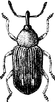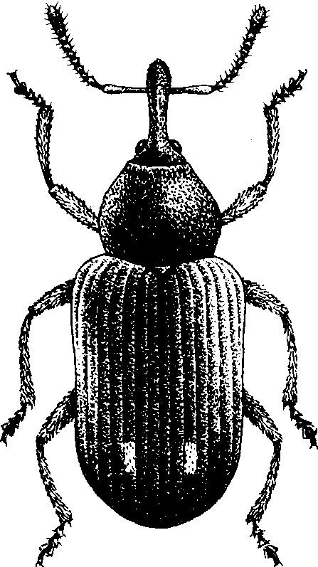 越冬密度大的稻田,春耕时宜捞去水面的残渣杂物。成虫盛发期,在田间放置喷糖醋液的稻草,连续二三天可诱引大量成虫,早晚收集杀死。成虫盛发期,稻叶初见虫孔时,用杀螟硫磷、敌百虫防治,或用捣碎的茶籽饼,加水煮烂稀释,均匀泼入田中,然后耕田,可毒杀幼虫。 稻象甲paddy weevilEchinocnemus squameus Bill-berg,又称水稻象鼻虫。昆虫纲,鞘翅目,象虫科。中国各稻区均有发生。日本、印度尼西亚也有分布。寄主有水稻、稗、游草。成虫体长4.0~4.5 mm,长椭圆形,头部伸长如象鼻,体暗褐,密被鳞片,鞘翅具纵沟,离翅端1/3处各有一长方形白斑。末龄幼虫长8 mm,体略弯,多横皱,胸部无足,头部栗褐,其余乳白。中国一年发生1~2代,以成虫、幼虫和少数蛹越冬。成虫咬食秧苗心叶或叶片呈横排小孔,有假死和喜甜食习性,卵产于叶鞘上用喙咬成的小孔内。幼虫孵化后潜入土中,为害幼嫩根须,老熟后作土窝化蛹。可在冬春结合农事压低虫源基数,诱杀成虫,成虫盛发期喷洒农药防治。