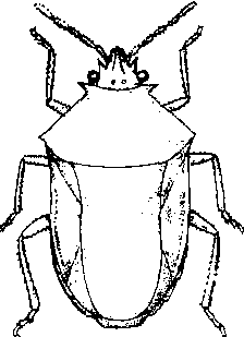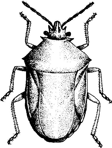 | 释义 | 稻黑蝽rice black stink bug刺吸水稻等作物的害虫。学名Scotinophara lurida (Bur-meister)。半翅目,蝽科。分布于东亚、东南亚地区和印度、斯里兰卡。中国分布北限为河北南部,山东和江苏北部偶见,长江以南各省区比较普遍。主害水稻,也为害小麦、粟、玉米、甘蔗、豆类、马铃薯及柑橘等。成虫和若虫刺吸稻茎、叶及穗部汁液,被害处呈黄斑,严重时影响分蘖和发育,甚至造成全株枯死。20世纪50年代以前,在中国一直是害稻蝽类的优势种。1929年曾在江苏宝山、浙江嘉兴等县成灾。1950年江西南部亦因此虫为害减产;60年代以后,虫口密度显著下降。为害水稻的黑蝽,除本种外,近似种还有弯刺黑蝽及短刺黑蝽。成虫体长8.5~10毫米,宽4.5~5毫米。长椭圆形,黑褐至黑色,头中叶与侧叶等长,复眼突出。喙可达后足基节间。前胸背板前角刺向侧方平伸。小盾片舌形,末端平截或稍内凹,几乎长达腹末,两侧缘在中部稍前处内弯。卵长约0.9毫米,宽0.8毫米,近短桶形,红褐色; 假卵盖圆突,周缘具有40~50枚小齿状的呼吸一精孔突; 卵壳网状,具有小点刻,被白粉。1 龄若虫体长约1.3毫米,头胸褐色,腹部黄褐或紫红,节缝红色,腹背有红褐斑; 3龄体长约3.3毫米,暗褐或灰褐色,腹部散生红褐小点,前翅芽微露; 5龄体长7.5~8.5毫米,头、胸淡黑,腹部稍带绿色,腹背臭腺孔区黑色,后翅芽显见(见图)。