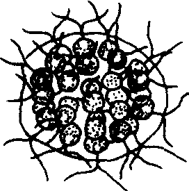 | 释义 | 空球藻kongqiuzao绿藻门团藻目空球藻属(Eudorina)植物。是淡水中分布极广的藻类。群体球形或卵形,由16、32或64个细胞组成。每个细胞的结构与衣藻相似,群体由共同的胶质鞘包被。行无性生殖时,群体中的每个细胞进行1次分裂,形成子群体,母群体胶质包被破坏,子群体逸出。行有性生殖时,是异配生殖,雌配子不能游动,雄配子具鞭毛能游动,游至雌配子处与之融合,形成合子。合子失去鞭毛,形成一层平滑的壁,留在雌配子所在的群体中,待此群体胶质溶解合子逸出。合子萌发时行减数分裂,形成1个红色的动孢子和2或3个小的退化的动孢子,动孢子逸出后作相当时间的游动,然后分裂多次形成1个新的群体。