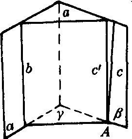 已知 a,b,c是不在同一个平面内的三条直线,a∥b,a∥c (如图).求证 b∥c. 证 因为a∥b,所以a,b确定一个平面α.同理α,c确定一个平面β.经过b和c上一点A作平面γ,则平面γ与平面β相交,设交线为c′.于是有c′∥a,c′∥b(三个平面两两相交得到三条交线,若其中有两条平行,则第三条也和它们平行).因为c和c′都在平面β内,c和c′都经过平面β内的A点且与a平行,根据平行公理可知c和c′重合,因此b∥c. |