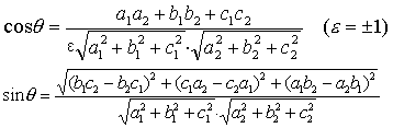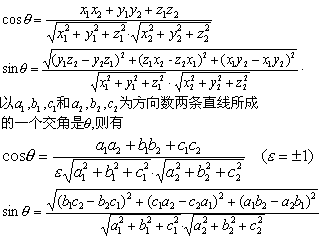 以a1 ,b1,c1和a2 ,b2 ,c2为方向数两条直线所成的一个交角是θ,则有