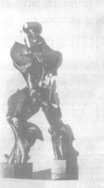 空间中连续之形 这件被称为未来派雕塑典范之作的作者是意大利画家、雕塑家恩培托·波菊尼(1882~1916年)。未来派,或称未来主义,是在第 一次世界大战前在意大利产生的文艺思潮。未来派主张跟过去的传统彻底决裂,以 “建设未来的艺术”。波菊尼1912年发表了 《未来主义雕塑宣言》,宣称要 “绝对地和彻底地放弃有限的线条和封闭式的雕塑,让我们把人体打开,把环境关闭到人体里面去”。一年以后,波菊尼创作了 《空间中连续之形》这件洋溢着生命和运动的杰作,是对波菊尼理论 一个最好的注释。 未来派在理论上有绝对化的东西,但未来派美术作品却成功地表现了速度和技术,即找到了 一种跟现代生活相和谐的视觉形式。 |
