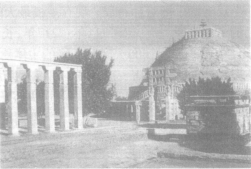 窣堵波 窣堵波印度佛教中瘗埋佛陀和圣徒骸骨的地方。半球形建筑。同世界许多早期的坟墓形制一样,脱胎于住宅。因印度北方古代的住宅是竹编泥抹的半球形建筑,因此为半球形。最大的窣堵波位于桑契,约建于公元前250年。半球直径32 m,高12.8 m,立于高4.3 m有栏杆的圆形台基上。台基直径36.6 m,外设1栏杆形石墙,高3.3 m,四面正中各设石门1道,门高10 m。半球体为砖砌,表面饰红色砂石。立柱间横排了3根石料;立柱顶部4条石连接成1个环。窣堵波的石墙、石门反映了建筑的基本特征。整个建筑尺度巨大。主体建筑形制较原始,浑朴。四周栏杆、门,轮廓复杂,与主体建筑形成鲜明对比。 |