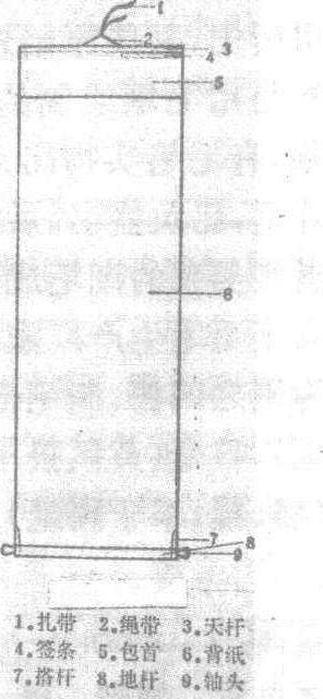 亦称挂轴。直幅、方幅书画宜装成立轴。需根据画心和悬挂环境、确定绫边颜色和品式。旧式房子高大,故轴幅宜长,现代民居住房较矮,故轴幅不宜太长。