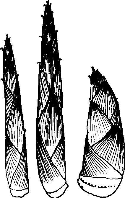 竹 笋 按竹笋地上部的分布状况及地下茎的生长习性分为散生型、丛生型和混生型三类。散生型的竹种有竹鞭,能在土中横向伸展,竹鞭上有节,节上长侧芽并生出鞭根。发育良好的侧芽,一部分发展成笋(称鞭笋),另一部分抽生新鞭。 栽培技术 以营养繁殖为主,如母竹移植、竹蔸移植、移鞭、移笋、竹竿压条、竹竿扦插等。母竹移植法应用最多,其优点是成活率高、新竹发展快、成林早,但繁殖系数小、母株体积大搬运不便。早竹类宜选基部直径为2~3厘米的二年生竹作种。竹枝扦插宜选壮健的1~2年生的嫩竹上的侧枝。一般竹节上生3条侧枝,居中者根原基少、发根难,应选左、右两边的侧枝扦插。长江流域毛竹的适宜栽植时期为11月至翌年2月,以年前为好; 冬季寒冷地区宜春季进行;珠江流域母株移植为4月至5月。侧枝扦插材料用7月间侧枝基部刚生出气根者为宜。毛竹母株移植每亩20~35株、移竹蔸或竹鞭每亩40~55株;早竹、淡竹、石竹、白哺鸡竹等中小型笋用竹,移竹每亩50~75株,移鞭每亩60~90株;丛生类型的麻竹每亩40株左右,绿竹70株左右;大头曲竹每亩约60穴,每穴2株。栽植后将土压紧和灌水。按氮、磷、钾为5:1:2的比例施肥。及时除草松土、埋鞭或覆土盖鞭。 散生型新竹出笋后,每隔3米左右选留一株长势健壮的成竹。笋用毛竹林每亩留母竹60~70株,7年以上的老竹一般于冬季砍伐,留养同等数量的新竹代替,以保持合理密度。丛生型一般在9月选留母竹,选留位置应宜于挖笋。3年以上的老竹于冬季砍伐。每隔3~4年清理一次老竹头,进行培土,使竹丛不断更新。 竹笋采收 毛竹鞭抽生后3~6年为发笋盛期。冬季可挖冬笋,清明前后开始采收春笋,8月采收鞭笋。早竹类的春笋品质比毛竹佳,鞭笋产量比毛竹高。丛生型竹栽植后2~3年开始收笋,5~6年产量最高,每年4月至11月为采收期。7月至8月为盛收期。竹笋的笋头刚露出土面为采收适期,过迟采收,纤维多具苦味。采收时扒开笋周土壤,露出竹鞭,据此用笋刀切断笋的基部,挖后将坑穴用土填平。 竹笋生产有大小年现象,在管理上应掌握大年适当减少留养的新竹数量,改善营养条件,增加当年发鞭和孕笋数量,以使第二年出笋量增加;小年适当增加留养新竹数量。数年后达到每年留养新竹数基本相同,逐渐消除大小年差距。竹笋生产还有退竹现象,竹笋中途停止生长并逐渐干枯或腐烂,发生原因是营养不良、竹鞭距母株较远营养供应不足、竹鞭或竹头受刀伤影响养分输送、笋芽受不良条件影响和竹笋被虫蛀食等。竹的虫害比病害严重:主要虫害有竹笋禾夜蛾,竹直锥大象虫、江苏泉蝇等。用敌百虫等杀虫剂防治,及时挖除受害竹笋,杀死幼虫。 竹笋bamboo shoots又称笋。中国名特产蔬菜之一。竹类刚出土或将出土嫩茎的统称。春、冬、夏季均可收获,分别称为春笋、冬笋和鞭笋,以前者为主。中国的竹笋多产自刚竹属中的早竹、毛竹;慈竹属中的麻竹、绿竹。竹笋中含有纤维素、多种氨基酸等。鲜笋可菜用,或加工制干、制罐、腌渍等,味鲜美。 竹笋竹类的嫩茎、芽。又称竹胎。由竹的嫩芽发育而成,味美鲜嫩,清脆可口,鲜笋中含维生素A、D及18种氨基酸和丰富的纤维素,具有助消化、增食欲、减肥、防痉、清渴等功效,是国内外消费者喜爱的保健食品。四川生产历史悠久,可鲜食,也可加工成玉兰片、笋干、盐渍笋和罐头等。四川方竹和筇竹的笋质较佳。全省23个市、地、州皆产,主产于乐山、泸州、宜宾、成都、涪陵等市、地。1991年全省笋用林面积约500公顷,笋、材两用林约8万公顷,产笋干约3962吨。 |