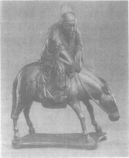 | 释义 | 竹雕张果老骑驴明。高19.9厘米,长14.9厘米。北京故宫博物院藏。张果老手握缰绳骑于驴背上,头戴风帽,身着长袍,上体微向前弓倾,长髯垂飘至胸。驴四足叉开,用力撑地,俯首向前探头,凸目圆睁,鬃毛竖立,似在抵触主人行走的命令。这个雕刻,取材于张果老的传说故事。张果老是传说中的八仙之一,姓张名果,相传为唐时有法术之人,常倒骑毛驴,可日行千里。此雕刻用刀简炼,力求传神,寥寥数刀便将驴的倔劲生动地刻画出来。