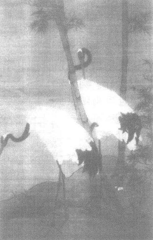 | 释义 | 竹鹤图明边景昭作,绢本设色。曾为清宫收藏。《竹鹤图》是明宫廷花鸟画家边景昭的传世代表作,描绘溪水之畔,翠竹之间,两只丹顶白鹤。一只正低首下喙在寻觅食物,另只单腿独立,转颈回首,梳理羽毛。两鹤情态各异,却都悠然自得。三竿老竹挺拔耸立,枝叶疏朗,一旁小竹丛生,枝叶斜披。环境清幽洁净,更加衬托出仙鹤的轩昂雅逸的气质。鹤造型准确,神态生动自然,笔法工整而坚实,设色妍丽而沉着。鹤羽勾勒有致,丝描精细,很好地表现毛色的光洁俊秀。构图疏密有致,安排得当,两鹤一前一后,一俯一仰,主体突出又灵活有变,中间一竹穿插,景物层次分明。远处溪滩隐约可见,使画面具有空间感和纵深感。老竹用中锋勾勒填色,坡岸又用侧锋描绘,笔法朴拙,风格浑厚,近似南宋院体画法。鹤的尾羽、足胫、丹顶刻划细腻而不板滞,用色浓艳而不妩媚,可见作者观察之精微,功力之深厚。边景昭,字文进,福建沙县 (一作甘肃) 人。生卒年不详。永乐年间(1403—1424)奉召入京,以绘事供奉内廷,任武英殿待诏,后因受贿被革职为民。为人旷达洒脱,且博学能诗。善画花果翎毛,永乐时曾与蒋子成的人物、赵廉的虎,被称为“禁中三绝”。是明代画院中影响较大的工笔花鸟画家,从师弟子甚多。