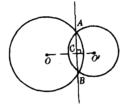 从以上原理可得以下三种情况: ❶相交两圆的等幂轴是通过两圆交点的一条直线(公共弦所在直线).如图1,⊙O与⊙O′交于A,B两点,直线AB是它们的等幂轴;