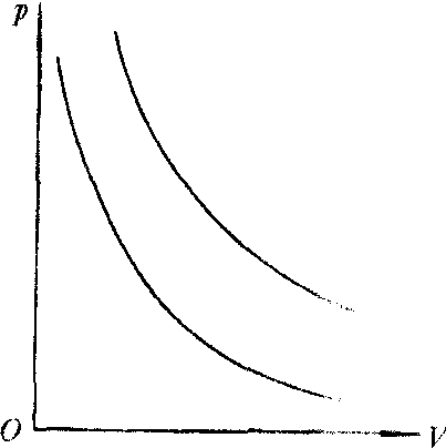 | 释义 | 等温线dengwenxian在物态方程的图解中,对同一温度的所有各点的连线。理想气体物态方程为pV=vRT,其中p为气体的压强;V为体积;T是热力学温度;v是摩尔数,R为气体常量。对于温度相同的各状态,压强与体积间的关系为pV=恒量,所以在p—V图上理想气体的等温线是等轴双曲线。如图1所示。1869年爱尔兰科学家安德鲁斯等温压缩二氧化碳(CO2),得到CO2的等温线族,如图2。
