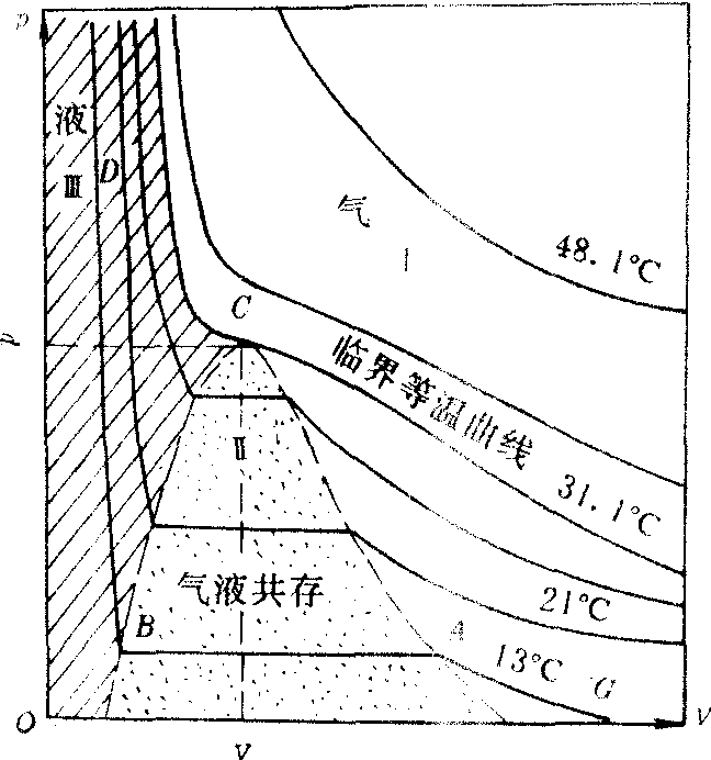 图2 CO2实验等温线 等温线水平面或等压面上温度值相等的各点联线。显示出该面上气温的分布状况。 |