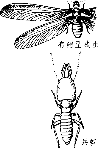 | 释义 | 等翅目Isoptera。通称白蚁。昆虫纲、有翅亚纲、 渐变态类。 中国古代把白蚁和蚁同称为蚁、蠡、螱等,白蚁一名始于宋代。世界已知约2 000种,中已知有300多种。
