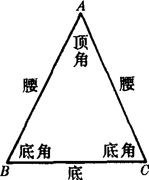 | 释义 | 等腰三角形dengyao sanjiaox-ing有两条边相等的三角形.相等的两条边叫做腰,第三条边叫做底;两腰夹角叫做顶角,腰与底的夹角叫做底角.