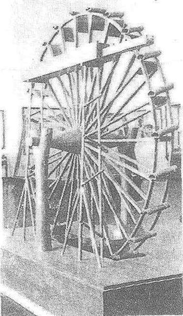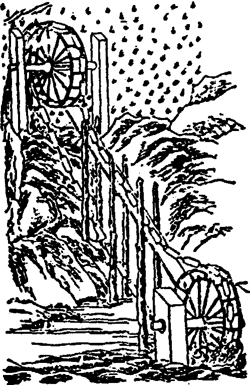 高转筒车(《天工开物》插图) 筒车tube water wheel提水机械。有利用水力和畜力两种: