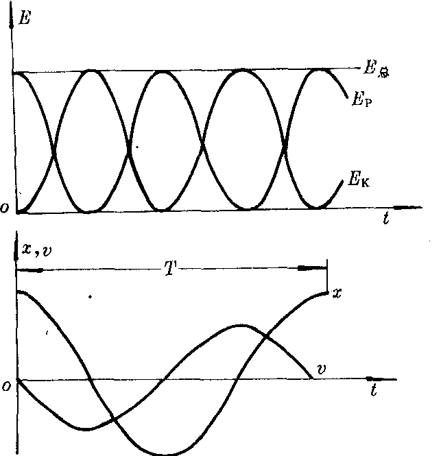 在机械振动中,对于简谐振动,由于作用于振动系统的线性回复力(或力矩)是保守力(或保守力矩),所以简谐振动的机械能是守恒的。以弹簧振子为例,位移为x=