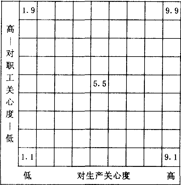| 释义 | 管理方格图又称“管理坐标图”或“九九图”。说明领导者管理方式的理论模式。1964年美国管理心理学家布莱克(R.R.Blake)和莫顿(J.S.Mou-ton)提出。评定领导者的管理风格可按他对生产的关心程度(横坐标)及对职工关心程度(纵坐标)两种行为在图上寻找交叉点。依管理有效性的强弱依次有五种典型的领导风格:1.战斗集体型管理(9.9);2.任务型管理(9.1);3.中游型管理(5.5);4.俱乐部型管理(1.9);5.虚弱型管理(1.1)。