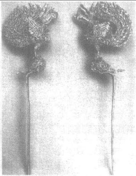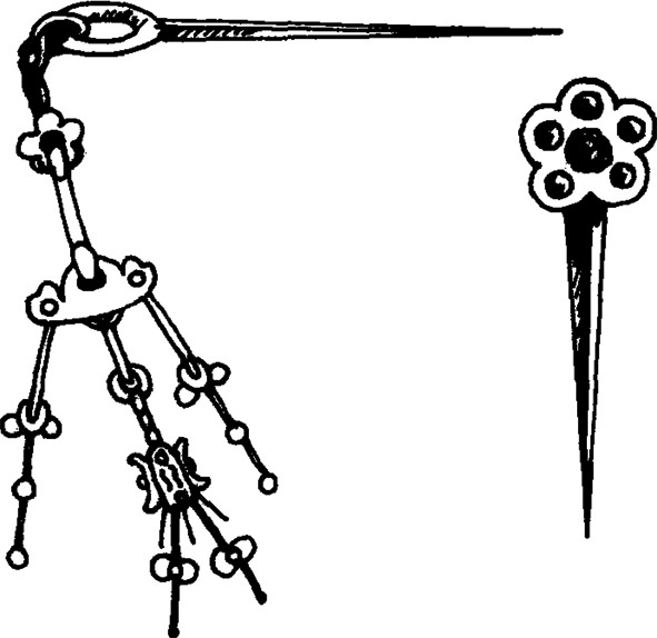 | 释义 | 簪zān也称“簪子”。一种用来绾住发髻或固定冠的单股针形首饰。原称“笄”,秦汉以后多称作“簪”。起源于新石器时代,其始多为圆锥状,商代簪头上始刻以各种纹饰,已较精致。周汉之簪,簪头有镶嵌绿松石者。初以石、骨磨制而成,后亦用竹、玉、象牙、金银等。唐宋时,簪的质料除金、玉、银外,还用玳瑁、翡翠、犀角,玛瑙等。明清时期,簪的工艺制作更加精湛,有以金银为簪架,用鸟类的绿色羽毛装饰起来的“翠羽簪”,以珊瑚雕制成囍字,为贵族女子结婚用的“双喜簪”“金凤簪”“金狮簪”等,做工都非常精美、华丽。簪是封建社会贵族妇女炫耀财富,昭明身份的一种标志。对簪的使用,也有严格的规定。如明代规定命妇冠服:一品、二品、三品、四品戴金簪二;五品戴镀金银簪二;六品、七品戴银簪二;八品、九品戴银间镀金簪二。而士庶妇女的簪,则多用木、竹、铜、银等制成,金、玉、象牙、珠翠等是禁用的。簪可用作男女发饰,插在发上以便固髻。清代因实行剃发留辫之制,男子使用者渐少,因演变为妇女的专用首饰。亦可作系冠的用具,使用时横贯冠帽,与发髻拴系。汉刘熙《释名·释首饰》:“簪,兓也,以兓连冠于发也。”《韩非子·内储说上》:“周主亡玉簪,令吏求之,三日不能得也。”《史记·淳于髡传》:“前有堕珥,后有遗簪。”汉史游《急就篇》:“冠帻簪簧结发纽。”晋干宝《搜神记》卷四:“南州人有遣吏献犀簪于孙权者,舟过宫亭庙而乞灵焉。神忽下教曰:‘须汝犀簪。’吏惶遽,不敢应。俄而犀簪已前列矣。神复下教曰:‘俟汝至石头城,返汝簪。’吏不得已,遂行。自分失簪且得死罪。比达石头,忽有大鲤鱼,长三尺,跃入舟。剖之得簪。”南朝梁简文帝《楚妃叹》诗:“金簪鬓下垂,玉箸衣前滴。”唐戎昱《采莲曲》:“同侣怜波静,看妆堕玉簪。”宋吴潜《睡起行北园》诗:“睡起卸冠簪,园行独自吟。”元无名氏《失题四首》:“将簪冠戴了,麻袍宽超。”《喻世明言·新桥市韩五卖春情》:“那小妇人又走过来挨在身边坐定,作娇作痴,说道:‘官人,你将头上金簪子来借我看一看。’吴山除下帽子,正欲拔时,被小妇人一手按住吴山头髻,一手拔了金簪。”《金瓶梅词话》第五十九回:“郑爱月儿出来,不戴跙髻,头上挽着一窝丝,杭州攒梳的黑鬖鬖,光油油的,乌云霞著四鬓,云鬓堆纵,犹若轻烟密雾,都用飞金巧贴,带着翠梅花钿儿,周围金累丝簪儿,齐插后鬓。”明汤显祖《牡丹亭·寻梦》第十二出:“腻脸朝云罢盥,倒犀簪斜插双鬟。”