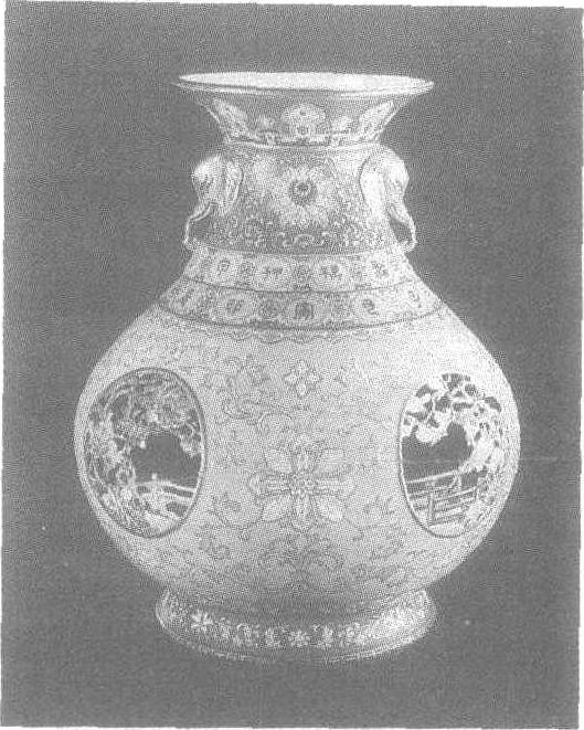 | 释义 | 粉彩镂空转颈瓷瓶清乾隆。高41.5厘米,口径19.5厘米。北京故宫博物院藏。烧制镂空套瓶从明代已经开始。清乾隆时期这种技术有进一步提高。此瓶即为典型一例。瓶外层为一广口、垂腹式大瓶,颈贴塑二象首为饰。颈、足部位以紫色为地,腹部以黄色为地,上以蓝色为主绘制花卉。器口和器足等部位以金彩描绘。腹部有镂空山石花卉的开光,其景物以粉彩装饰。颈部可旋转,它与内瓶粘连在一起,转动颈部时可从腹部的镂空开光内看到内瓶所绘的婴戏图,如同走马灯一般。外瓶颈部与腹部的结合部位上下写有天干、地支,当颈部转动时,可对干支。此瓶之所以能转动是因外瓶内底有一鸡心钮,与内瓶外底的鸡心槽相配形成轴心,故可自由转动。当外瓶分节烧好后,将内瓶置于外瓶的碗钮上,外瓶的其余部分套在内瓶外组合起来,再行粘接修饰,即制成了这种转颈套瓶。它的设计和烧制成功表明乾隆时期的制瓷技术已达空前的高度。