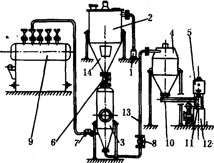 图1 圆筒立式青贮塔的基本结构 1.出气装置;2.栏杆;3.塔顶;4.窗口;5.青贮饲料;6.栅条底;7.虹吸管式排水管;8.卵石地基;9.排水道 草粉和叶粉生产 将牧草(苜蓿、三叶草和黑麦草)、松针叶、紫穗槐叶及刺槐叶等优质豆科和禾本科植物进行干燥,然后粉碎成粉料,或再压制成颗粒,以便运输和贮存,并保持饲料中原有的营养成分。牧草含粗蛋白质15%~20%,叶粉含粗蛋白质8%~12%,另外还有丰富的维生素和胡萝卜素等。因此,一些国家常以此作为营养全面的蛋白质—维生素饲料添加剂,用于饲喂畜禽,效果显著。如鸡饲用松针叶粉后,羽毛光亮,皮质油黄,蛋黄色泽加深;猪饲用后,皮肤光亮红润,猪肉品质得以改善。 牧草粉的生产过程是收割后的牧草先用热风或自然阴干法干燥到含水量低于14%,然后用锤片式粉碎机进行粉碎。由于草粉的容重小(200~260千克/米3),体积大,在粉碎和输送过程中容易产生粉尘。为了减少饲料厂的粉尘,草粉宜采用气力输送,并配以较大直径的旋风集尘器、大容积和低转速的闭风器。由于草粉的摩擦系数大,制粒时耗能高,因此,制粒机的压模厚度和孔径比要选用适当。 松针叶粉生产是先用脱针叶机从松枝桠上脱下嫩枝叶,送入切碎器粉碎,然后用气流式或箱式干燥装置进行干燥。产品要求呈绿色,胡萝卜素含量大于80毫克/千克,且无污染。 秸秆化学处理 秸秆(玉米秸、麦秸稻草等)主要由细胞壁等组成,表面被坚实的角质层和硅酸盐类物质所包裹,秸秆所含纤维素和半纤维素可通过反刍动物瘤胃中的微生物分解为葡萄糖,易于消化吸收;此外,还有细胞的内容物。从理论上说,占秸秆干物质80%以上的营养成分可被反刍动物消化吸收。但由于纤维素和半纤维素在细胞壁中与木质素和硅酸盐类物质以复合体的形式存在,使反刍动物对秸秆干物质的实际消化率仅为40%左右。采用碱化处理或氨化处理,如加入氢氧化钠(烧碱)、液氨(无水氨)、氨水(氢氧化铵)和尿素等,可使纤维素、半纤维素与木质素分离,引起细胞膨胀,使秸秆变得疏松、柔软、易于消化。 氢氧化钠处理有湿法和干法两种碱化工艺。前者用2%氢氧化钠溶液浸泡秸秆,然后用50倍清水冲洗。此法易对环境造成严重污染。后者是将4%~5%的高浓度氢氧化钠溶液直接喷洒在已切碎的秸秆中,经搅拌和堆放一定时间后再食用,可获得最佳消化率。在碱化处理时,有专用的秸秆碱化调质机对碱草比例进行控制。氢氧化钠处理可明显提高粗饲料的消化率,但家畜饲用后需大量饮水,环境污染较为严重。 氨处理通常采用液氨和尿素两种氨源处理秸秆,亦可采用氨水和碳酸氢铵。氨的含氮量为82.4%,尿素的含氮量为46.67%。先将秸秆和草捆盛入容器(如耐腐蚀的金属罐、氨化炉、窖、池、缸和塑料薄膜袋),加以密封,然后通入液氨(无水氨)。它是一种液化了的氨气,一般用氨量为1.5%~2.0%。氨气易溶于水,与秸秆发生化学反应,温度升高(亦可加热促进化学反应,缩短处理时间),经一定时间后,即可获得非蛋白氮营养素,并提高了粗蛋白质的含量,从而明显增加了家畜对粗饲料的采食量和消化率。处理后的粗饲料没有氨的残留物,方法简便,成本低。但氨是一种有毒气体,容易挥发,当空气中的含氨量达到15%~18%时,有燃烧危险,且污染环境。中国建造的氨化炉,采用液氨或碳铵,可氨化麦秸、稻草和玉米秸,日处理量为20吨,处理后,秸秆的粗蛋白质含量可提高1~1.5倍。尿素是反刍动物饲料的蛋白质补充源。若在秸秆中加入尿素,则会很快被反刍动物瘤胃中的微生物分解,释放出氨,若与羰酸(氨基酸碳架)结合,即可形成氨基酸。在添加尿素的同时加入适量的糖蜜,会产生很好的效果,但尿素添加过多,会引起氨中毒。 叶蛋白饲料的提取和利用 叶蛋白饲料是从新鲜牧草及青绿饲料的茎叶中提取出的浓缩植物蛋白质饲料,粗蛋白质含量高达32%~58%,各类氨基酸含量接近动物蛋白质,富含胡萝卜素和维生素,可用以饲喂犊牛(代替全脂牛乳)和肉鸡等,效果明显。 浓缩叶蛋白的提取方法有工业型和农场型两种。工业型提取工艺包括原料供料、粉碎、榨取汁液、残渣贮存、蒸汽加热或加酸搅拌、蛋白质凝结分离、干燥浓缩及成型等。其产品为浓缩蛋白质或青饲料蛋白质饼块、草饼及草颗粒。农场型提取方法较简单,对挤压获得的蛋白质沉淀物可不经浓缩而直接饲喂家畜,草纤维残渣也无需成型和干燥,即可直接青贮或饲喂家畜。 饲料的热喷处理 将秸秆、秕壳、藤蔓、鸡粪以及制革厂副产品蹄、角、皮、毛装入高压罐内,关闭球阀密封,通入饱和蒸汽。当上述物料的含水量达到25%~40%,温度140~190℃,压力4~12千克/厘米2时,作用3~8分钟,然后突然降压喷爆。由于细胞间木质素溶解,氢键断开,纤维细胞撕裂,可以获得膨松的产品。这种产品气味清香,而且能消除原料内的一些有害物质和病菌。图2是中国制造的热喷设备。