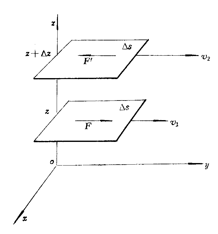 | 释义 | 粘滞定律nianzhi dinglu描述流动粘性流体内粘滞力的定律,又称内摩擦定律。是实验定律。实验表明,粘性流体内假想面元两侧流体相互作用的粘滞力F与面元面积△s及速度梯度dv/dz成正比,见图1。即F=ηdv/dzΔs。此式称为粘滞定律。式中比例系数η称为粘滞系数,又称粘度,由流体本身的性质和温度决定,是流体粘性的量度。在国际单位制中,η的单位是帕·秒,水在河床内稳定流动时,由于内摩擦的存在,水沿河底的流速最小,等于零。而愈远离河底的区域,水的流速则愈大。若在河底沿流速的方向建立x轴,垂直于流速竖直向上的方向建立z轴,见图2。则流速由原点沿z轴的分布是依次增大的,流速v=v(z),是坐标z的函数。速度梯度dv/dz定量地表示了流体的变形率。牛顿在流体力学实验中,通过反复的观测曾总结出一个规律:在流动的流体内部隔离出一块小的矩形体积,则其单位面积上的切应力(内摩擦力)τ与该处流体的变形率(速度梯度)dv/dz成正比,即:τ=ηdv/dz。此式实际上是粘滞定律的特殊形式。它表明:若流体不存在变形率,则矩形隔离体上就不会出现切应力,而只能出现垂直于其表面的压力。流体的粘滞系数η与温度有密切关系。液体的粘滞系数随温度升高而减少。气体则相反,其粘滞系数随温度升高而增大。更奇特的是,某些流体在极低的温度下所具有的性质。例如,液态氦在温度降低到2.16K以下时,可以沿着毛细管无摩擦地流动,即在该温度下液态氦的粘滞系数已趋近于零,这种性质称为流体的超流性。应用粘滞定律不但可以揭示粘性流体的流动性质,还确定了一些十分重要的粘滞系数。研究物体在流体中的运动、流体在管道中的流动以及机器上使用的润滑油等方面都会应用到粘滞系数。下表给出了几种流体的粘滞系数。