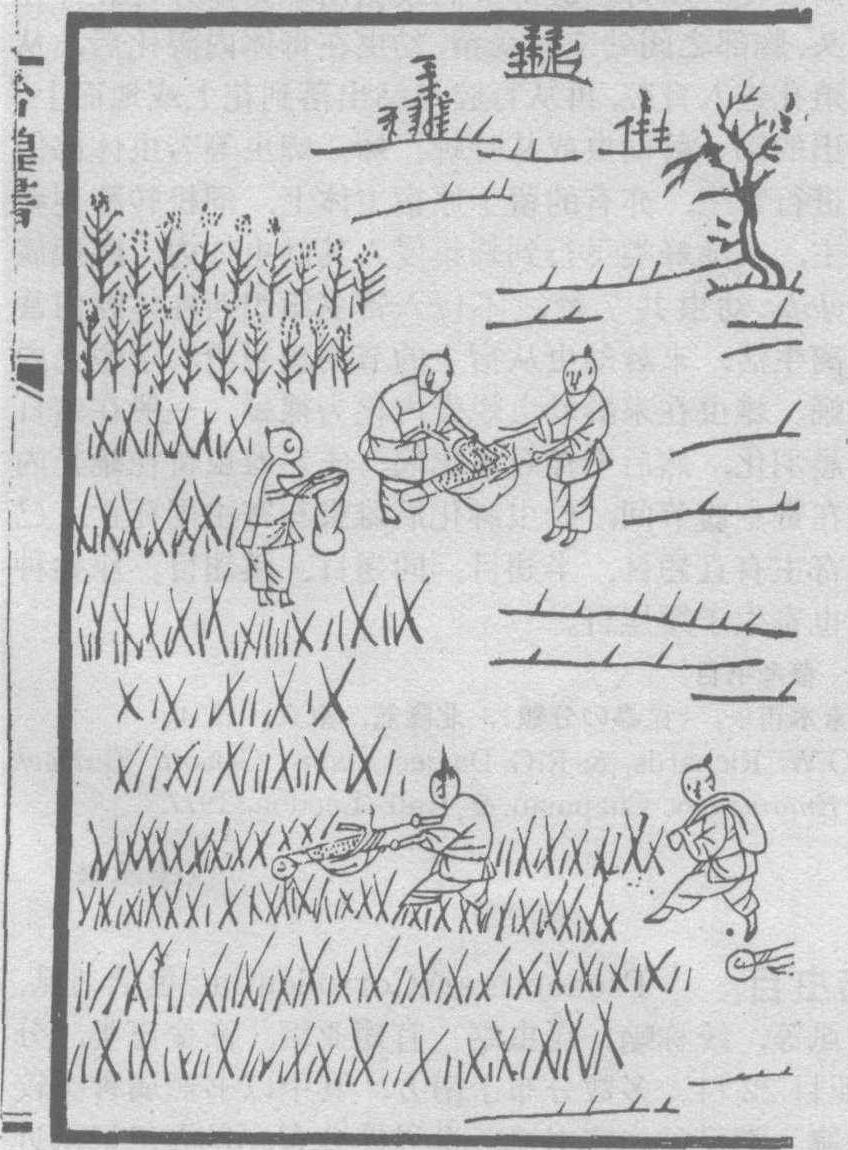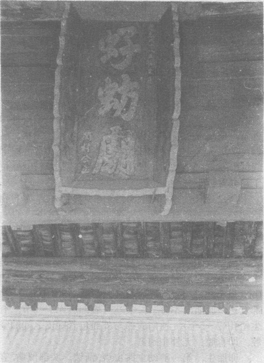 图3 清代陈崇砥《治蝗书》中的捕粘虫图 防治 在中国古代,多称粘虫为“虸蚄,最早见于西汉的《氾胜之书》。从北魏太和六年(482年)到明代至元二十三年(1360年)的800余年中,见于文字记载的粘虫为害约35则。古代人民对粘虫的为害习性已有所认识,在防治上也积累了一些经验。清代蒲松龄《农桑经·杂占》中写道:“虸蚄之害,唯除子之法,最捷最易,用力少而成功多。”“蚄初出,小如蚕蚁,一见,便宜打之”,“至大时,遍地蠕蠕,打稍懈,则禾立尽;打太久,则禾亦枯,难为力矣。”陈崇砥《治蝗书》(1874年)附“捕粘虫说”中写道:“北地值田禾茂盛之时,或遇大雾,或阴晴不时,则生青虫。形如蚕,能吐丝,害苗食心,藏于苗心,遍野皆是,俗呼粘虫。”“治之之法,宜用滑车”(滑车即粘虫车,图3)。此外,挖沟封锁也是流传已久的群众治虫经验。但是,长期以来,由于封建迷信思想的统治和科学技术的落后,也有不少人把粘虫为害视为“天意”,称之为“神虫”,甚至修虸蚄庙(图4)祭奉,祈求“神灵”免灾。 中华人民共和国建立以后,开始深入调查研究,分区研究了粘虫生活史及其种群数量变动与各种生态因子的关系,进一步揭示了粘虫越冬迁飞规律,查清了各地主要为害世代的虫源性质,创造性地拟定了粘虫异地测报办法,提高了预测预报与综合防治技术水平。在大量发生情况下,全国大部分地区可以做到及时防治,已基本上控制为害。所采取的主要防治方法是:根据粘虫迁飞为害规律,采取综合措施,压低越冬代及一代虫源,以控制一代粘虫危害,在幼虫低龄阶段喷洒敌百虫、敌敌畏、灭幼脲以及氯菊酯等农药(液剂、粉剂或毒土);注意保护利用天敌。利用灭幼脲类农药防治粘虫,用药少、效果高,对人畜安全,对天敌和其他有益生物的杀伤作用也很低。在粘虫成虫初盛期开始,用草把(或毒草把)大面积诱卵灭卵; 在华北地区秋季玉米中耕除草对粘虫(3代)也有一定防治效果。