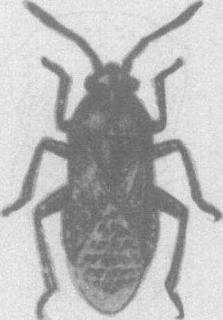 山西、内蒙古年生2~3代,河北、山东等地3代。以成虫潜于树皮下、墙缝或杂草中越冬,翌年恢复活动后,先为害蔬菜和杂草,春谷抽穗后转入谷田为害,产第一代卵,第二、三代卵多产于夏谷和高粱上,发生极不整齐,8月间,在谷穗上同时可见成虫、卵和若虫。成虫活泼,白天活动,尤以晴朗无风时中午前后最为活跃,夜晚及阴雨天多转入小穗间停息。卵成堆产于小穗或穗埂上。每雌可产卵40~60粒,卵期3~5天。若虫有群集性,尤以3龄前明显,大部时间潜于小穗间隙,5、6龄若虫活动力增强,逐渐分散,若虫期10~15天。在干旱谷子产区雨量偏多年份发生较重。一般夏谷受害重于春谷,小穗紧密、穗形细长的品种很少受害。选用和培养小穗紧密早熟丰产品种是控制为害的主要措施,在谷子抽穗后,及时喷施乐果粉或乐果乳油均可奏效。 粟缘蝽millet coreidLiorhyssus hyalinus (Fa-bricius),又名粟小缘蝽蟓、印度小缘蝽。昆虫纲,半翅目,缘蝽科。广泛分布于全世界。寄主有谷子、糜子、高粱、麻类、烟草、向日葵、萝卜、白菜。成虫体长6.0~8.2 mm,窄椭圆形,黄褐至灰褐色,具光泽,有时呈血红色,被淡色长毛;头三角形;触角及足有棕黑色斑点;前翅超过腹端,革片除脉纹及前翅膜片均透明,革片中脉末端有一四边形翅室。末龄若虫长约4.7 mm,长梭形,暗棕褐色,腹部黄褐,有许多红色细斑。山西一年发生2~3代,以成虫越冬。卵产于谷穗主轴上或其他寄主的花托、朔果上,块状,排列不规则。成、若虫常聚集在植物的花、果实和穗上吸食汁液,造成不同程度的为害。宜在若虫孵化盛期喷施农药,种植小穗紧密品种可减少成虫产卵。 |