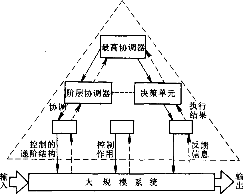 多级递阶控制法 广泛应用于大规模生产系统的自动控制、管理信息系统、农业生态系统管理的最优设计等,即大系统的分解与协调。将处于同一级地位的各子系统相对分离开来,并使之各自按其最优化方式运转。然后,再把这些子系统统一规划,使之协调起来,最后达到全局和整体上的最优化。只有每个子系统的方程和目标函数都不受其他子系统的状态变量及控制变量影响时,才能把大系统分解成多个子系统。每一步递推过程都必须把分解与协调交错进行,分解时必须改变子系统的方程和目标函数;协调时,主要有两个原则:平衡原则与预估原则(图4):