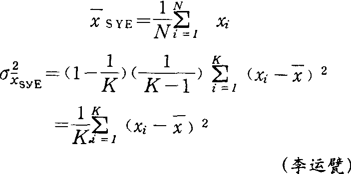 依次类推,直排到N为止。对号码1,2,3,……,K作随机抽样(只抽1个),若i入样,则K+i,2K+ i等皆入样(见随机抽样)。N个个体不一定恰好是K的整数倍,则各列个体数量后会有一行少于K,但当各列个体数超过50时(即N/K≥50),这个差可以略而不计。本抽样估值法(简记为SYE)为:
