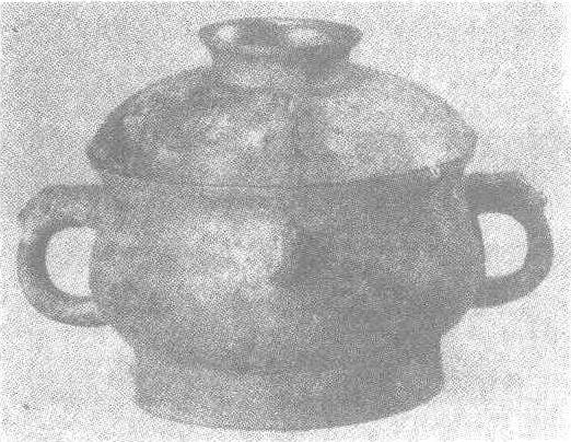 | 释义 | 素面铜簋西周。盛食器。通高17厘米,口径18厘米,腹径18.4厘米,足径14.7厘米。重2.6公斤。北京市文物工作队在废旧物品中拣选。此簋覆碗形盖,盖上有一碗形钮,腹侧附长舌兽形耳一对,圈足矮耳。器盖与器腹中部各有竖环耳两个。全器光素无纹饰,通体泛出莹绿的光泽。这种造形的铜簋,在西周青铜礼器中实属罕见,是一件不可多得的珍贵文物。