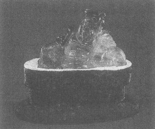 | 释义 | 紫晶钟离权像清。高5厘米,最宽7.5厘米。台北故宫博物院藏。钟离权(即汉钟离),神话中八仙之一,受铁拐李的点化,上山学道。他的神仙传说起于五代、北宋。《宣和图谱》:“神仙钟离先生名权,不知何时人,而间出接物,自谓生于汉。吕洞宾于先生执弟子礼。”此像由整块紫晶雕成,钟离权呈倚坐状,背靠一酒瓮。双髻,长须,敞胸露怀,神态十分悠闲。