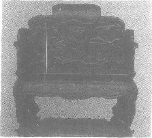 明。高115厘米,深84厘米。北京故宫博物院藏。近于罗汉床式,三面围子作成七屏风式样,束腰,足下设托泥。除座面外通体浮雕曲卷翻转、形态各异的荷花、荷叶、藕、梗枝等。花叶向背俯仰和枝梗的穿插回旋与宝座造型巧妙地结合在一起。木质精美,做工光滑圆润,纹饰细腻,是明代宫廷宝座。