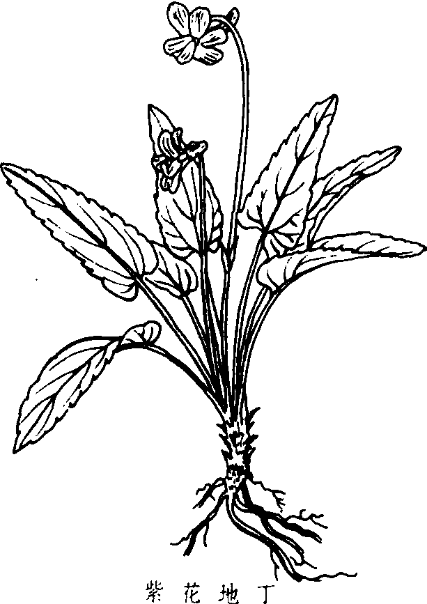 | 释义 | 紫花地丁herba violae清热解毒药。出《本经逢原》。见《活兽慈舟》。又名地丁、地丁草、紫地丁、辽堇菜。为堇菜科植物紫花地丁Viola yedoen-sis Mak.的干燥或新鲜全草(图)。除去杂质,洗净,切碎,晒干。主产江苏、浙江、安徽等地。苦,寒。入心、肝经。功能清热解毒,利湿消肿。《活兽慈舟》:“泻火,溃坚,消肿。”主治:❶喉风,配大蓟、黄丹、蒲公英等(《抱犊集》)同用。