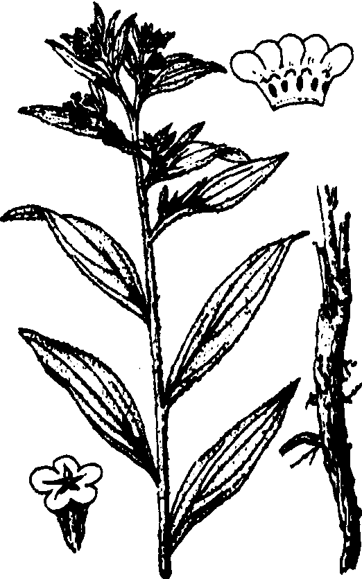紫草 紫草redroot gromwellLithospermum erythrorhizon Sieb. et Zucc.,又称大紫草。紫草科,紫草属。多年生草本。生长于向阳山坡、路边、山谷草丛中。分布于东北,四川、广西等省区;朝鲜、韩国、日本亦有分布。全株密被平伏粗毛,根粗大,干时呈紫色,茎直立。单叶,互生,叶片披针形,无叶柄或具短柄。聚伞花序,顶生,有苞片;花萼5深裂;花冠白色,亦5裂,喉部有5枚小鳞片;雄蕊5枚;子房4深裂,成熟时,形成4个卵形小坚果,表面无瘤状突起,包藏于增大的花萼中。宜选向阳和排水良好的砂质壤土或黏壤土。用种子繁殖,春季播种。成长后,挖根入药,有凉血、活血、解毒之效,也可作紫色染料。