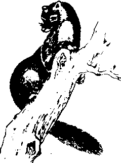 紫貂 紫貂食肉目鼬科。体细长,耳大略呈三角形,尾为体1/3,毛蓬松。四肢短,毛棕褐色。重1千克;长45厘米,尾长14厘米。分布于阿尔泰山中、西部山地森林。每胎1—4仔。毛皮名贵,为国家一级保护动物。 |