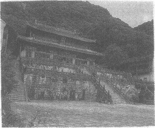 紫霄宫北距复真观7.5公里。建于1413年(明永乐十一年), 由道经“紫为中央,高于九霄”得名,是武当山8观2宫建筑群中保存较完整的主体建筑。共有殿宇、楼阁等860间,建筑面积1万多平方米。依山而筑的层层崇台上,楼堂殿宇鳞次栉比。自东天门进龙虎殿,沿中轴线过碑亭、十方堂、紫霄殿至父母殿,依山势逐层修筑。两侧东宫和西宫也蜿蜒盘旋而上,衬托出主建筑的宏伟。紫霄殿内场面开阔,高耸的石台上,重檐九脊、翠瓦丹墙歇山顶的大殿庄严雄伟。大殿檐下,有永乐皇帝赐额“太元紫霄宫”,金光灿灿。更值一观的是铜武当和“飞来杉”。铜武当是明万历年间铸造的铜质武当山模型,其高山流水,殿堂楼宇,十分逼真。“飞来杉”则是一数丈长的杉木,传说从远方飞来武当,故称之。如在杉的一端轻轻叩击,则另一端可听到声音,如同金属传音,因而又叫它“传音杉”。为全国重点文物保护单位。 紫霄宫全国重点文物保护单位。位于丹江口市武当山展旗峰下。是武当山八大宫观中规模宏大、保存完整的道教宫观之一。建成于明永乐十一年(1413),赐额“太元紫霄宫”。依地形,中轴线上有龙虎殿、十方殿、紫霄殿、圣父母殿,逐次升高。两侧有配房及大碑楼等建筑,共八百六十多间。殿堂楼宇,鳞次栉比,主次分明,构成一组纵长约200米的建筑群。紫霄殿是宫内主体建筑,建在三层石基台上,大殿深广各五间,重檐九脊,孔雀蓝琉璃筒板瓦顶,正、垂、戗脊镂空雕花,飞金流碧,富丽堂皇。殿内珍藏元、明、清各代铜铸神像、供器数以百计。其中三卷本《高上玉皇本行集经》最为珍贵,乃明正统五年(1440)翰林院手抄金字,纸为泥青简,时过500多年,仍崭新如昔,金光闪耀。此外,近旁尚有赐剑台、禹迹池、禹迹桥等古迹。紫霄宫周围松杉挺秀,修竹丛丛,奇花异草,景色清幽。其后有太子岩,西为南岩,亦称紫霄岩,俱为风景佳处。1931年5月,贺龙率红三军由洪湖挺进鄂西北,驻军武当山,紫霄宫曾为司令部驻在地。 紫霄宫在湖北省丹江口市武当天柱峰东北。始建于明代永乐十一年(1413年),是武当山八大宫观中保存较完整的宫观之一。中轴线上有龙虎殿、十方殿、紫霄殿、父母殿,层层崇台,依山叠砌。两侧为东宫、西宫、自成院落。紫霄深广各五间,重檐歇山顶,翠瓦丹墙。其额枋、斗拱、天花,遍施彩绘,藻井浮雕二龙戏珠,形态生动。全殿流金溢彩,富丽堂皇。殿前平台宽阔,雕栏重绕,甚为雄伟壮观。殿内供玉皇、真武、灵官诸神,形象逼真,雕刻手法细腻,为明代作品。宫周围松杉竹林挺拔,奇花异草掩映,更显宫宇雄伟壮观。1982年公布为全国重点文物保护单位。 |