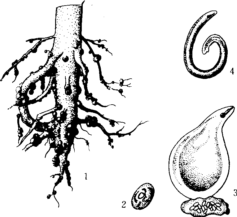 红麻根结线虫是好气性动物,主要分布在0~40厘米的土层内。凡结构疏松,通气性好,含盐低而呈中性的沙质土壤及连作红麻发病重。土壤含盐量高于0.05%可抑制线虫发生。适宜红麻生长的持水量,24~27℃的土温有利线虫繁殖和寄生。幼虫一般在10℃以下停止活动,55℃经5分钟死亡。由于受害根系吸肥水能力差,在干旱和缺肥的情况下产量损失更大。 侵染过程和病害循环 红麻根结线虫主要以二龄幼虫和卵在病残中,少部分在病土中越冬,成为翌年的主要初侵染源。线虫本身活动距离有限,主要通过带虫土杂肥,流水及农事操作引起远距离传播。南方根结线虫在湖南和浙江麻区一年发生4代,世代重叠明显。以二龄幼虫从幼嫩根部表皮直接侵入,也能从较老侧根的疏松皮层细胞或表皮裂缝处侵入定植,靠口针刺吸细胞内的养分,并分泌激素诱发寄主产生多核巨形细胞,形成大小不同的根结,线虫在根结内发育。成熟雌虫多行孤雌生殖,每头雌虫可产卵300~600粒。红麻根结线虫在无寄主的土壤中存活期不超过2年。 病害控制 主要采取以下措施: ❶轮作。与棉花、花生、芝麻、玉米等非寄主作物轮作2年,可基本控制该病为害。水旱轮作效果更佳。 ❷清除病残和杂草。收麻后立即将麻根和寄主杂草空心莲子草等清除出田外,减少翌年初侵染源。 ❸加强栽培管理。避免施带虫土杂肥和用带虫水灌溉,重病麻地灌水1个月以上或红麻收获后立即灌水耕翻冬泡,减少病原线虫量。发病麻地及时补充肥水,提高麻株耐病力。 ❹药剂控制。重病麻地每亩分别用D-D混剂、5%涕灭威颗粒剂、10%克线丹颗粒剂、20%棉虫灵粉剂40千克、25千克、2千克和1.5千克,D-D混剂于播种前7天沟施,其余药剂于播种时兑毒土撒在播种沟内,防病和增产效果显著。另外,吴家琴等(1990)用淡紫色拟青霉(Paecilomyces lilacinus Samson)稻米制剂沟施,对南方根结线虫的卵寄生率达90%,防病和增产效果显著。 红麻根结线虫病kenaf rootknot nematode disease红麻的线虫病害。病原物是垫刃目的多种根结线虫。以中国南方根结线虫〔Meloidogyne incognita (Kofoid et White)Chitwood〕为主,也有爪哇根结线虫〔M. javanica(Treub)Chit-wood〕和花生根结线虫〔M.arenaria(Neal)Chitwood〕。这类线虫都是固定内寄生于根系,诱发大小不一的根结症状。病株地上部生长不良,重病株早衰枯死。土壤中病株残体是主要初侵染源。沙土有利于发病。连作地病重。施治措施清除病残体和轮作可减轻发病,化学防治(处理病土)也有良好效果。 |