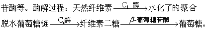 | 释义 | 纤维素xianweisuD-葡萄糖以β-1,4-糖苷键缩合而成的均聚糖。也可以说是纤维二糖的高聚物。纤维素是自然界最丰富的天然高分子化合物,是构成植物细胞壁的基础物质。纤维素为长链线形分子,分子间因氢键形成束装有序排列。纤维素不溶于水,可溶胀。在酸性水溶液中,纤维素比淀粉难水解,最终水解产物为D-葡萄糖。 纤维素cellulose高等植物细胞壁的“框架物质”。它是由很多D-吡喃型葡萄糖基,以β-1-4苷键连接而成的线形高聚物。实验式为(C6H10O5)n。结构式为天然纤维素不溶于水,具有特性的X-射线衍射图谱。纤维素是自然界中储备量最多、分布最广的天然有机物。据推算,植物界中纤维素的总量约26.5×1010吨。在高等植物中,木材含纤维素40~50%;稻、麦、竹、芦苇等禾本科植物的秆含40~50%;苎麻、亚麻、大麻等韧皮含80~90%;棉花含95~97%。微生物界(细菌)、动物界也含有纤维素。