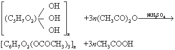 纤维素不能直接与乙酸进行反应,但在少量硫酸存在下,则能反应,生成乙酸纤维素酯。纤维素与乙酸酐的酯化反应较容易进行: