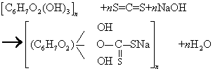 纤维素与二硫化碳、氢氧化钠反应,生成纤维素黄原酸钠,是人造纤维之——粘胶纤维。其反应式: