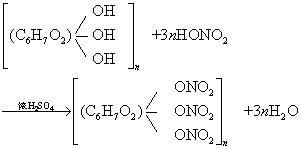 | 释义 | 纤维素的酯化xianweisu de zhihua纤维素分子中,每个葡萄糖单元有3个醇羟基,能与酸起酯化反应,主要有3种反应: 与浓硝酸反应,生成三硝酸纤维素酯 (硝化纤维); 在硫酸催化作用下,与乙酸或乙酸酐反应生成三乙酸纤维素酯 (醋酸纤维); 与二硫化碳和氢氧化钠反应,生成纤维素黄原酸钠 (黄原酸纤维)。制备三硝酸纤维素酯的反应如下: