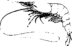 | 释义 | 中国对虾身体细长,略呈梭状;头胸甲前端的额角很长,上缘有7-9个锯齿,下缘有3-5个锯齿;第二触角发达,触鞭约为体长的2倍多;胸部8对附肢都比较小;3对腭足的外肢发达;雌虾微显褐蓝色,雄虾微呈黄色。 中国对虾Chinese prawnPenaeus chinensis L.,甲壳纲,十足目,对虾科,对虾属。体形长大,侧扁,甲壳甚薄,表面光滑,额角细长,平直前伸,末端超出第二触角鳞片的末缘,上缘7~9齿,下缘3~5齿。头胸甲具颈沟、眼眶触角沟及额角侧沟,额角侧沟仅延伸至胃上刺附近,无中央沟,具触角刺、肝刺,无颊刺。第4至第6腹节背缘有纵脊,尾节两侧无活动刺。体较透明,体表布有棕蓝色斑点,胸部及腹部肢体略带红色,雄虾体色较黄。栖于沙泥底质海域,主要分布在中国北部、韩国,在海洋渔业中占相当重要地位,亦是重要的人工养殖对象。