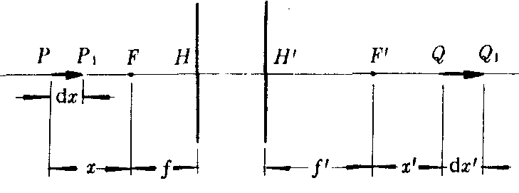 | 释义 | 纵向放大率zongxiang fangdalu沿轴小物的像长和物长之比。又称轴向放大率。表示光学系统对沿光轴放置的小物所成像的放大程度及取向。图中PP1为沿轴小物,长为dx;QQ1为PP1经光学系统所成的像,长为dx′。根据牛顿公式可求得纵向放大率α为α=dx′/dx=-ff′/x2=-x′2/ff′ α=n′β2/n n和n′分别为物方折射率和像方折射率;纵向放大率α、横向放大率β和角放大率γ之间的关系是 β=αᵞ 这三种放大率具体表征了光学系统物空间和像空间共轭量之间的几何比例关系,在实际光路计算和设计中经常用到。