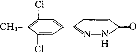 | 释义 | 纹枯净diclomezine杂环类杀菌剂。化学名称:6-(3,5-二氯-4-甲基苯基)-3(2H)哒嗪酮。化学结构式如下。原药白色结晶,25℃时水中溶解度0.74 mg/kg,23℃时在甲醇中溶解度2.0 g/L、丙酮中3.4 g/L。对光、酸、碱均稳定,固体状态或在常规溶剂中稳定。无燃烧、爆炸和皮肤刺激性。由日本三共公司开发,选择性杀菌剂。主要对丝核菌属引起的病害,如水稻纹枯病有特效,抑制纹枯菌菌丝生长,对病害具有保护和治疗作用。并有较长的残效,对其他菌核菌引起的病害亦有效,对植物安全。对大鼠急性口服LD50≥12 000 mg/kg,经皮LD505 000 mg/kg。无致突变、致畸作用。鲤鱼TLM(48 h)11.91 mg/kg。