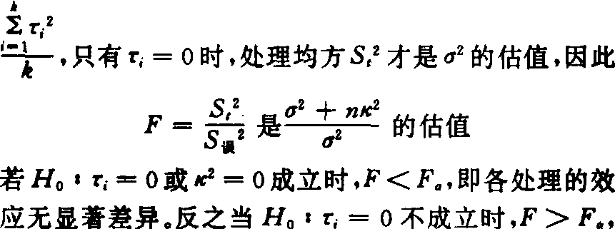 在H0:σ2 =0的假设下,F才能与F 比较。显然固定模型和随机模型的分析重点不同,前者在于对τi的分析,后者在于对σ2 的分析。农化研究的试验资料大多属于固定模型,如肥料用量试验和肥料品种试验等均为固定模型。连续多年进行的肥料试验中年份效应为随机模型。 |