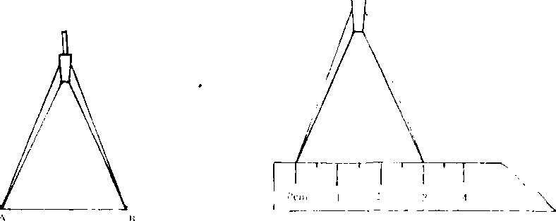 图3 对于比较短的线段, 可以利用圆规配合米尺进行度量。如图2, 先把圆规的两个脚尖分别放在线段AB的两个端点上,然后用米尺量出圆规两脚之间的距离, 就是这条线段的长度。图2中线段AB的长度为3厘米。对于比较长的线段,可以用圆规度量n次(n是大于1的自然数),然后用米尺量出两脚间的距离a,最后用乘法计算,即线段AB=na。如图3中线段AB=5a。 |